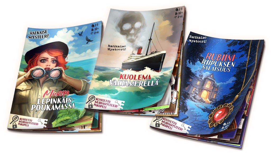 Uppoudu vanhan ajan murhamysteereihin, joissa selvität rikoksen ratkaisemalla pakopelihenkisiä tehtäviä - arvoituksia, koodeja, piilotettuja vihjeitä ja muuta aivonystyröitä kutkuttavaa. Helposti mukana kulkeva seikkailu, jota et malta jättää kesken! Cluehound mysteerilehtiä on saatavilla suomeksi ja englanniksi.